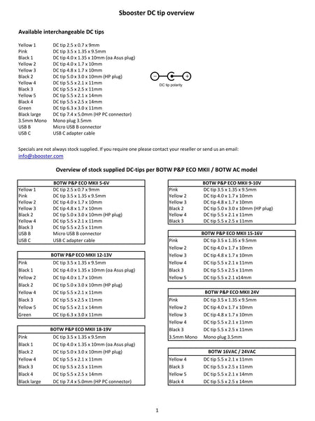 The BOTW P&P ECO linear power supply is available in 11 output voltages. By clever design we have combined these 11 output voltages into 6 models. Every model – except for the 24V model - has three output settings. Also every BOTW P&P ECO linear power supply is equipped with a self-locking interchangeable DC-tip system. This combination of the multi voltage settings and self-locking interchangeable DC-tip system makes the BOTW P&P ECO the most versatile linear power supply ever. Scroll further down for a DC-tip overview per power supply model.