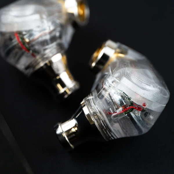 Iris is housed in a transparent 3D-printed acrylic housing that is highly compact and lightweight. Long listening sessions remain comfortable and effortless.