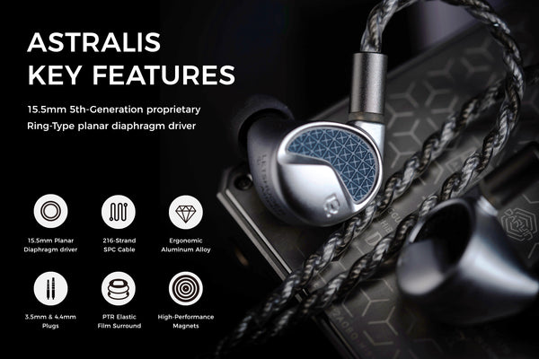 Astralis features LETSHUOER’s 5th generation proprietary Ring Type planar diaphragm driver. This unit represents a comprehensive restructuring and optimization of traditional planar architecture.